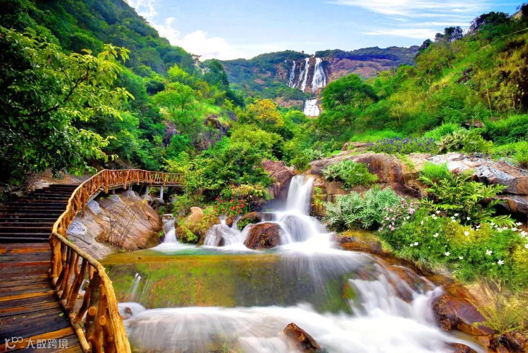 落差达428.5米的大瀑布从白水寨山上飞流直下