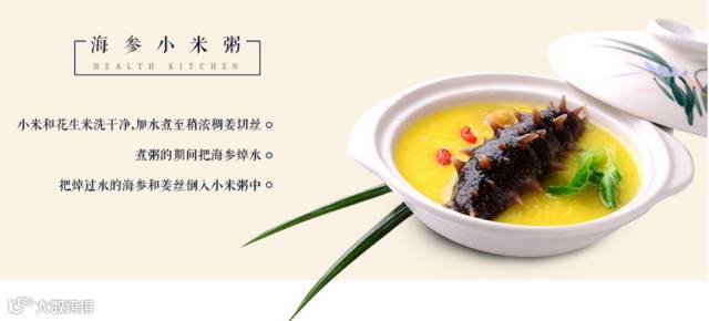 贰、煮粥的同时把海参焯水切碎 把焯过水的海参碎放入小米粥中 即食