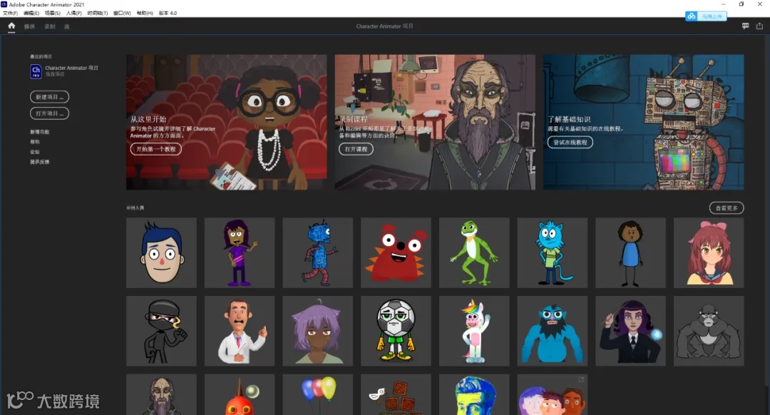 11.桌面上打开安装好的【Character Animator CC2021】软件。