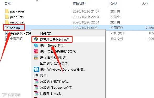 4.打开的文件夹中,鼠标右击【Set-up】安装程序,选择【以管理员身份运行】。