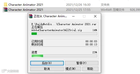 2.等待压缩包解压【Character Animator CC2021】完成。