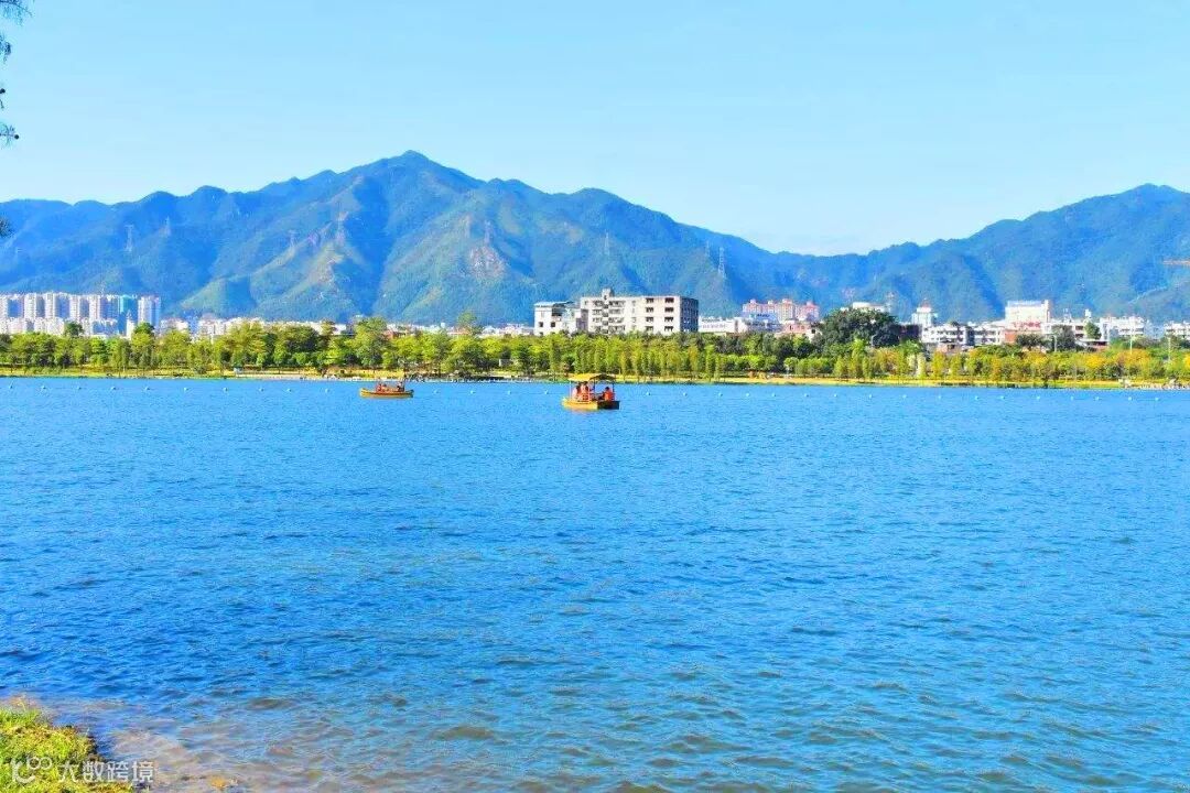 飞来湖公园的环境清幽,走在飞来桥上,看着远处的太阳,欣赏着蓝天绿水,给人不一样的视觉感受。