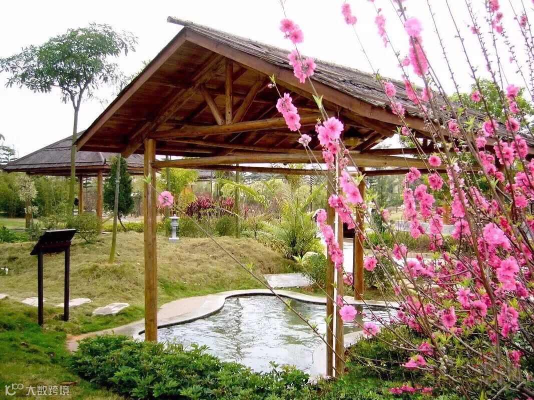 风格古朴、自然,每个温泉池对应配置一种名贵中药,有当归泉、杜仲泉等30多个中药温泉池,各具功效,让您在浸泡温泉的同时达到养生、美容的疗效。