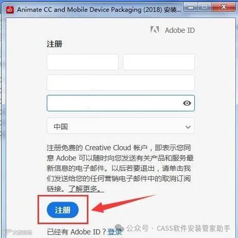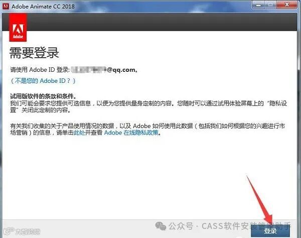 3.有Adobe账号的用户可以输入账号密码登录,没有的用户点击“获取Adobe ID”。