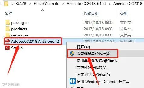 11.返回到开头解压的【Animate CC2018】文件夹,鼠标右击【Adobe.CC2018.Anticloud.r2】,选择【以管理员身份运行】。