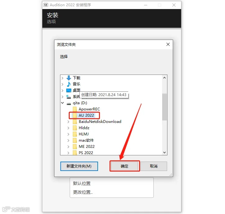 5.【Audition 2022】软件默认安装路径为系统C盘,点击小文件夹可设置安装路径。