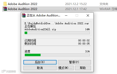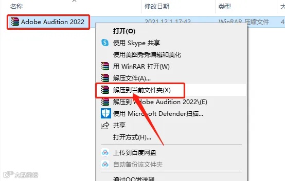 1.本次安装教程以Au2022版本为例,下载并解压【Audition 2022】软件安装包。