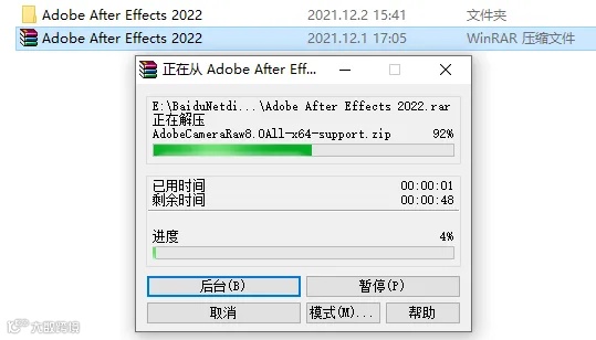 2.等待【AE2022】压缩包解压完成。