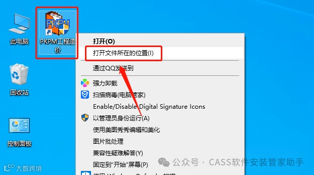 14.桌面找到PKPM软件图标,鼠标右击选择【打开文件所在的位置】。