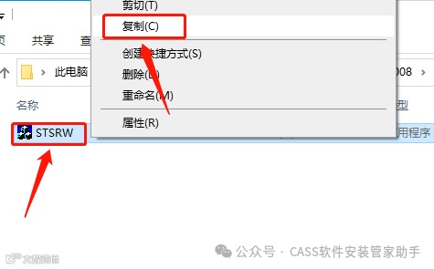 13.在打开的【pj程序】文件夹中,鼠标右击【STSRW】文件,选择【复制】。