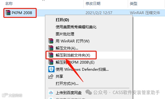 1.下载并解压【PKPM2008】安装包,鼠标右击压缩包选择【解压到当前文件夹】。