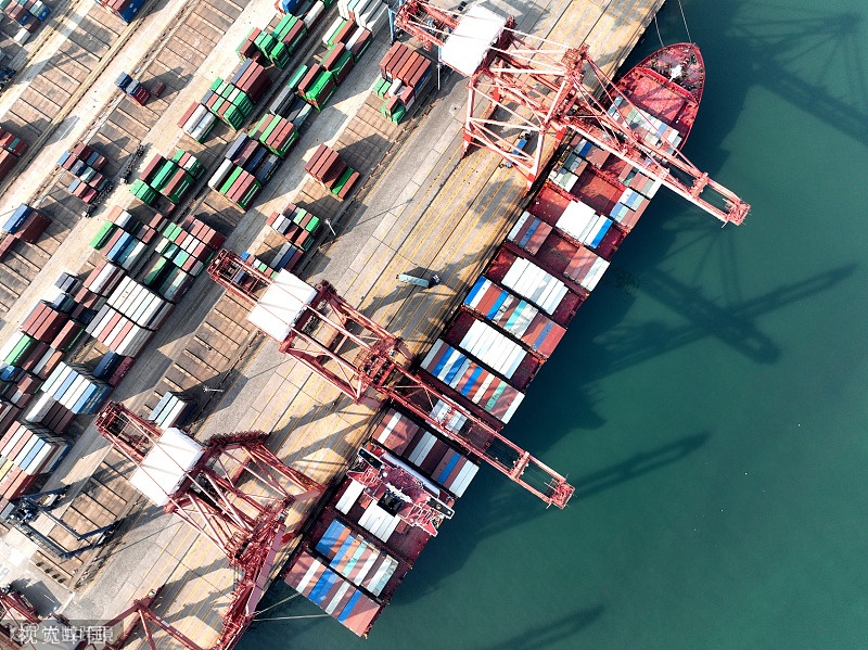 The busy loading and unloading of containers at the operation area of the container terminal in Lianyungang, East China's Jiangsu province, March 7, 2023. [Photo/VCG]