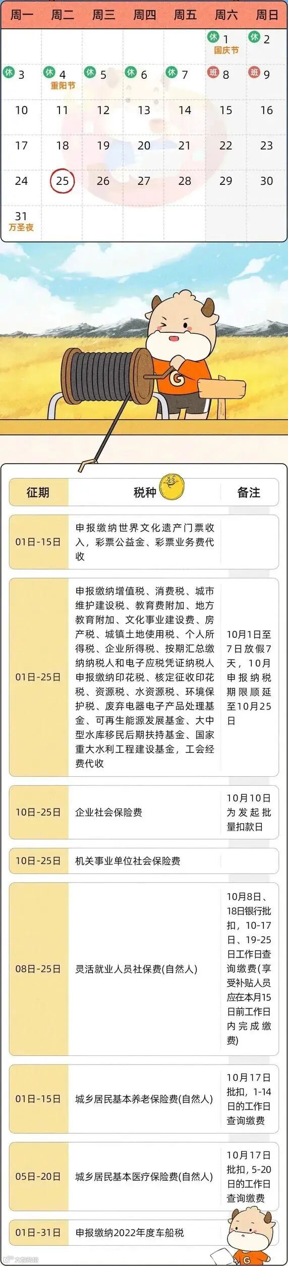 税局明确:10月申报纳税期限顺延至10月25日。请纳税人要合理安排时间,按时完成抄报税哦!
