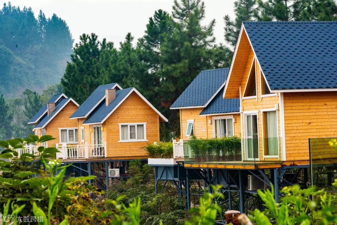 一栋栋木屋别墅隐匿在青山绿树之间