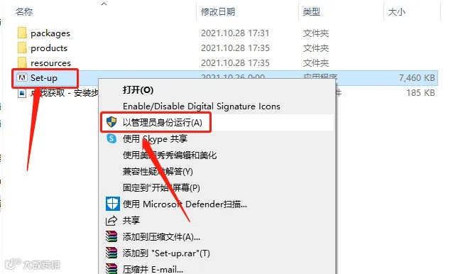 4.打开的文件夹中,鼠标右击【Set-up】程序,选择【以管理员身份运行】。