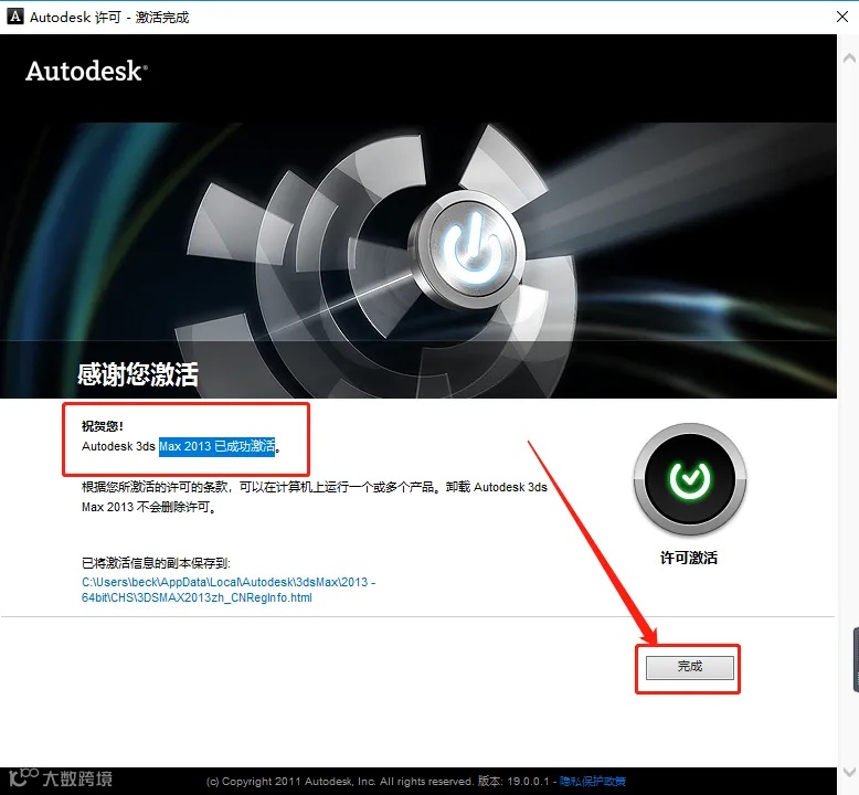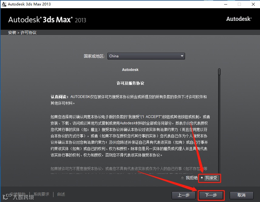 25.选中注册机中Activation方框中生成的激活码,使用ctrl+C键或者鼠标右击选择复制,然后把复制的激活码使用ctrl+V键粘贴至我具有Autodesk提供的激活码方框中,粘贴好后点击【下一步】。