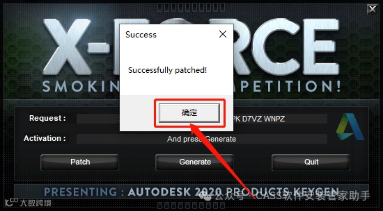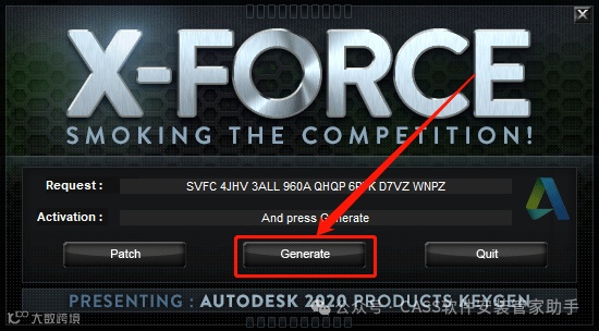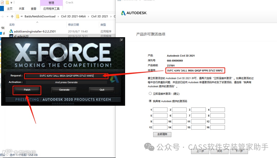 36.使用Ctrl+C快捷键复制申请号,然后使用Ctrl+V快捷键粘贴到注册机里面的【Request】中(记得删除原Request中的内容),点击注册机左下角的【Patch】。