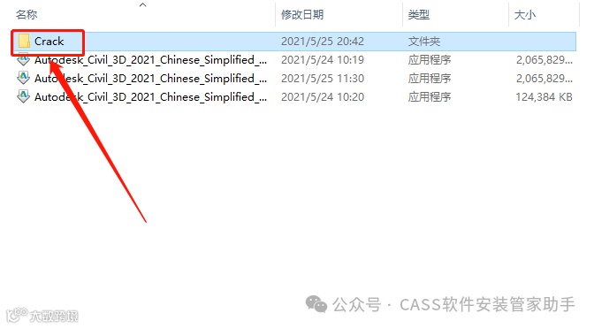 19.返回到解压的【Civil 3D 2021】文件夹中,然后打开【Crack】文件夹。