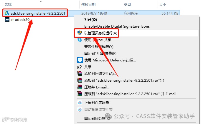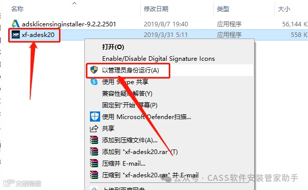 20.鼠标右击【adsk……9.2.2.2501】程序,选择【以管理员身份运行】。