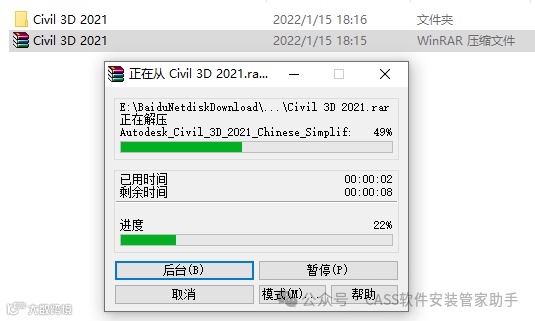 1.下载并选中【Civil 3D 2021】软件安装包,鼠标右击,选择【解压到当前文件夹】。