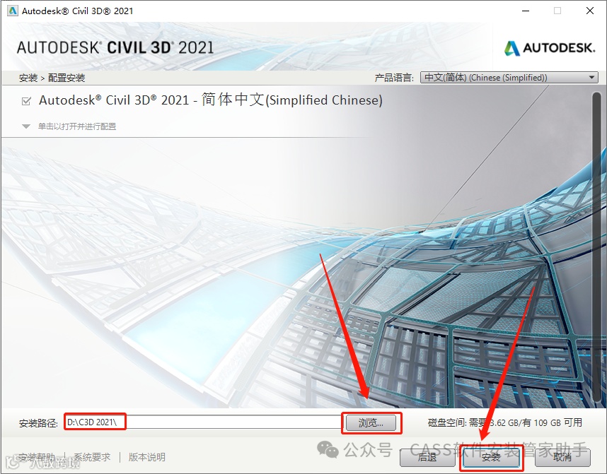 9.点击【浏览】设置软件的安装路径,建议安装在除C盘之外的其他的磁盘,然后点击【安装】。