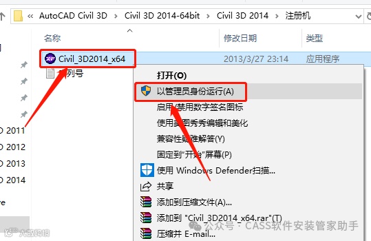 23.选中【Civil_3D2014_x64】注册机,鼠标右击选择【以管理员身份运行】。