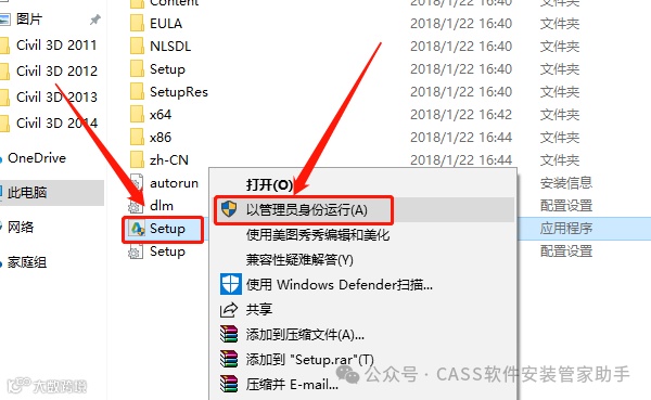 5.鼠标右击【setup】程序,选择【以管理员身份运行】。