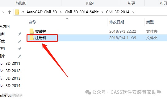 22.返回到【Civil 3D 2014】文件夹,打开【注册机】文件夹。