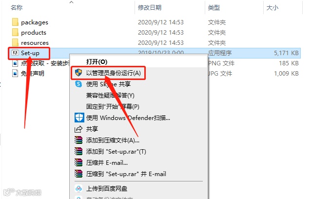 4.打开安装包文件夹中,鼠标右击【Set-up】,选择【以管理员身份运行】。