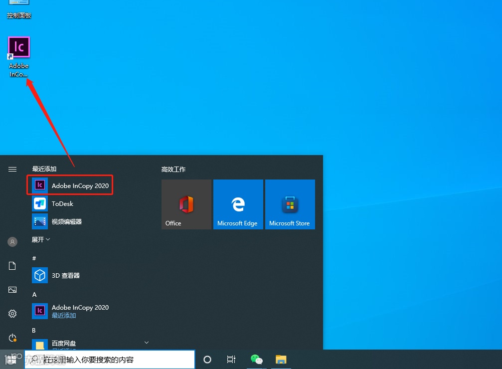11.桌面左下角的开始菜单中找到Adobe InCopy软件,鼠标拖拽到桌面上即可创建桌面启动方式。