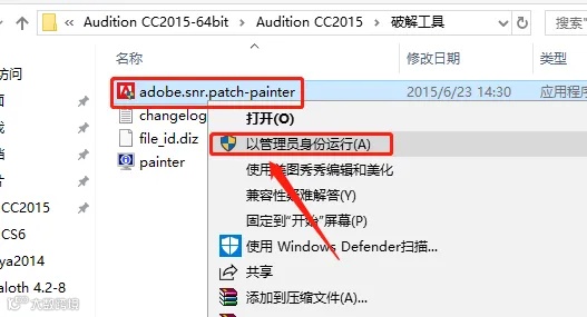 14鼠标右击【adobe……】注册机,选择【以管理员的身份运行】。