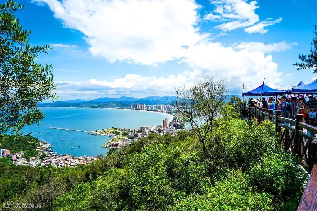 站在观景台,可以看见双月湾全景,左右两个半月,据说一个是风平浪静,一个是波涛汹涌,挺奇特的风景,远处青山连绵,近处是宽阔的海湾,风景尽收眼底。