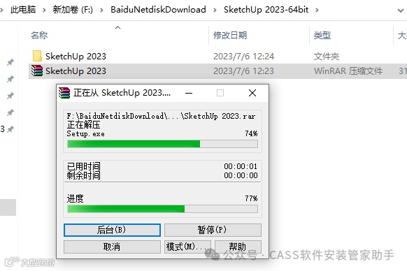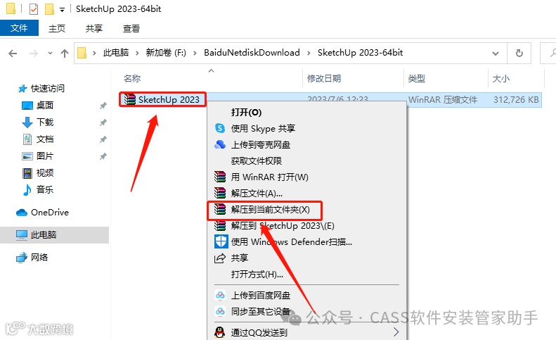 1.下载SketchUp 2023安装包,鼠标右击压缩包选择【解压到当前文件夹】。