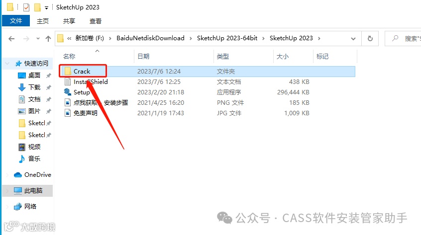 12.返回到解压的【SketchUp 2023】文件夹中,然后打开【Crack】文件夹。