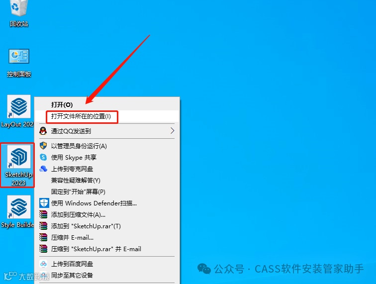 14.在桌面上找到SketchUp 2023软件图标,然后鼠标右击选择【打开文件所在的位置】。