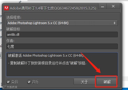 21、浏览你的文件夹,在Adobe Lightroom文件夹中找到【amtlib.dll】文件,点击【打开】。