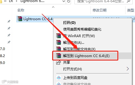 1、打开下载好的软件安装包,右击软件压缩包,选择【解压到Lightroom CC 6.4】。
