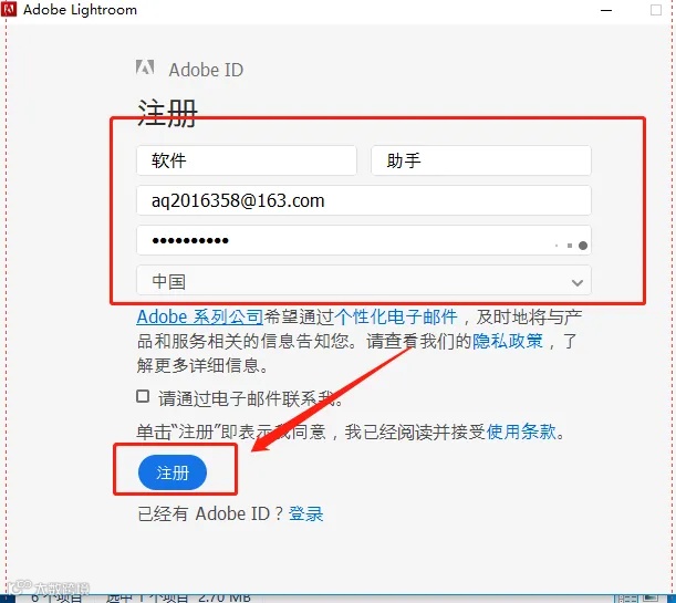 8、填写用户名,邮箱和密码,填写好注册信息后点击【注册】。