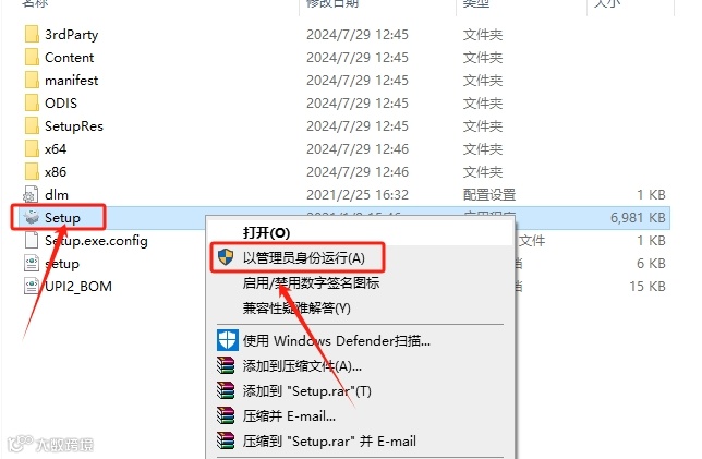 5.鼠标右击【setup】安装程序,选择【以管理员身份运行】。