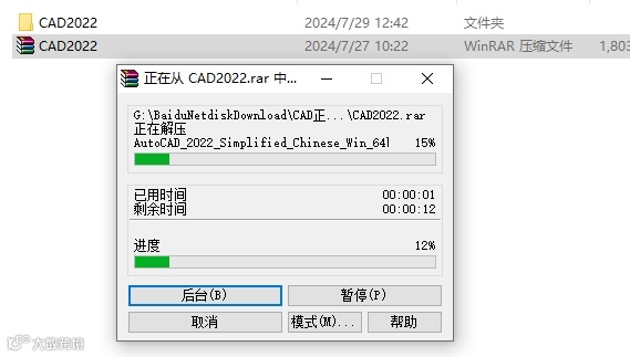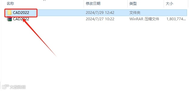 1.下载CAD2022压缩包,鼠标右击压缩包,选择【解压到当前文件夹】。