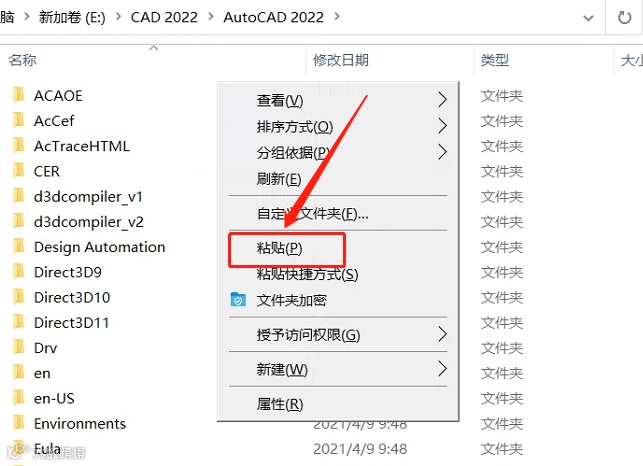 13.返回到解压的【CAD2022】文件夹中,打开【crack】文件夹。