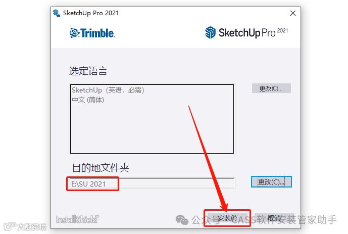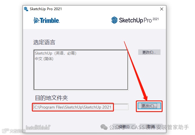 6.草图大师软件默认安装路径为系统C盘,点击【更改】可以设置安装路径,草图大师最好安装在默认路径,这样有利于以后安装插件和Vray渲染激活,不然可能会导致安装激活失败。