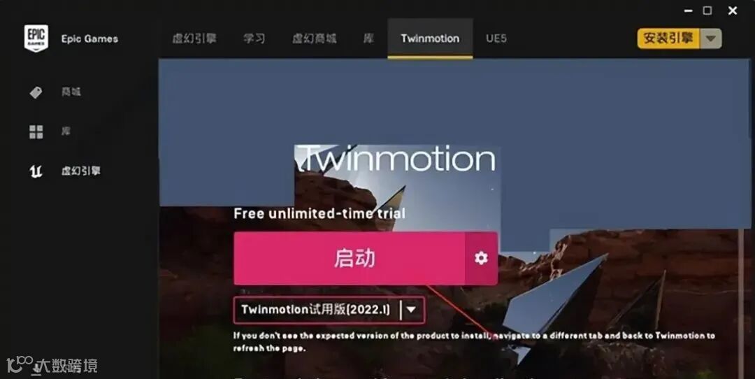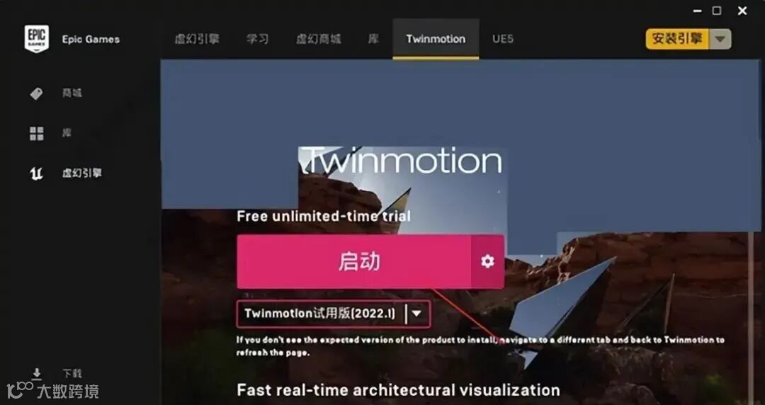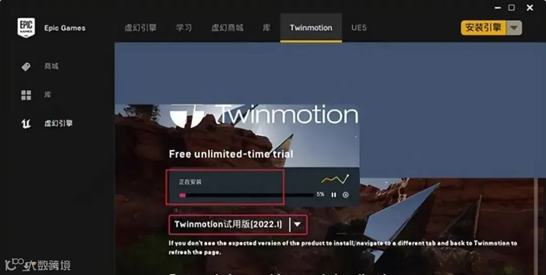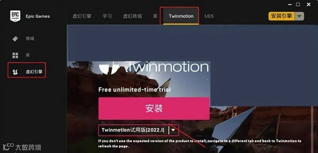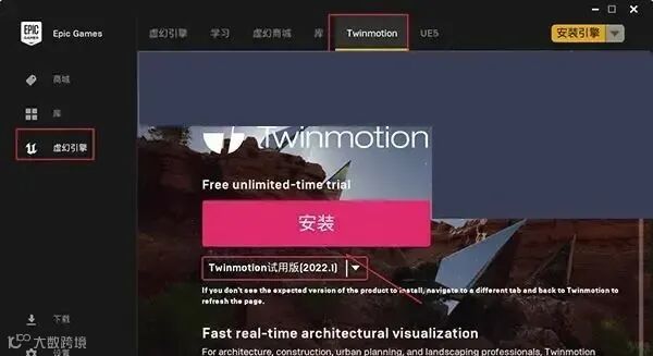 5、注册完成后进入界面,依次点击虚幻引擎——Twinmotion,直接点安装即可;