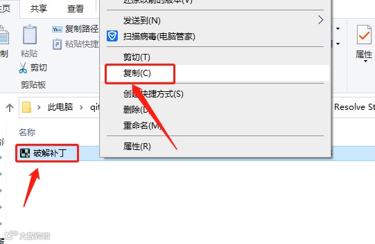 15.选中文件夹中的【破解补丁】,然后鼠标右击选择【复制】。