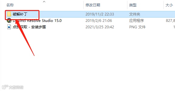 14.返回到解压的【达芬奇15】文件夹,然后打开【破解补丁】文件夹。