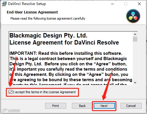 8.勾选【I accept the terms······】,然后点击【Next】。