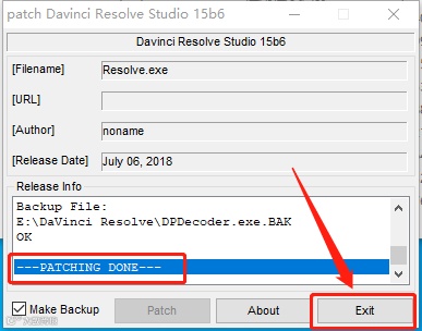 21.底部方框中下视【PATCHING DONE】,说明激活成功,然后点击【Exit】关闭破解补丁。