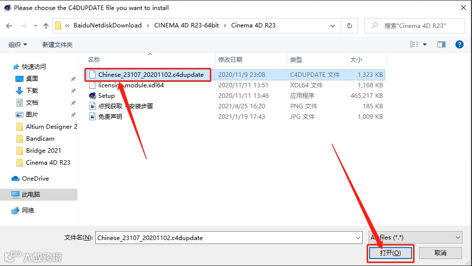 22.找到并打开解压的【Cinema 4D R23】文件夹。