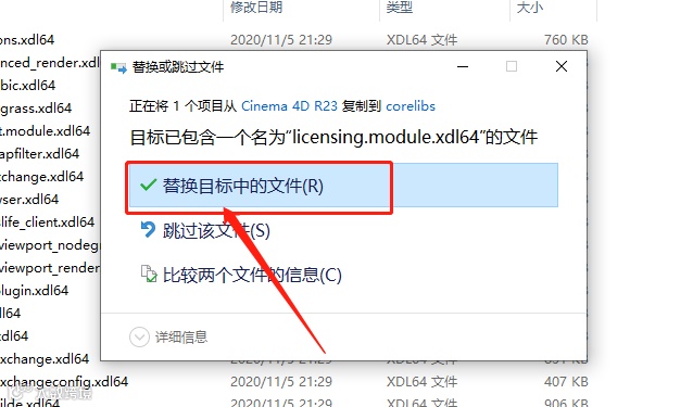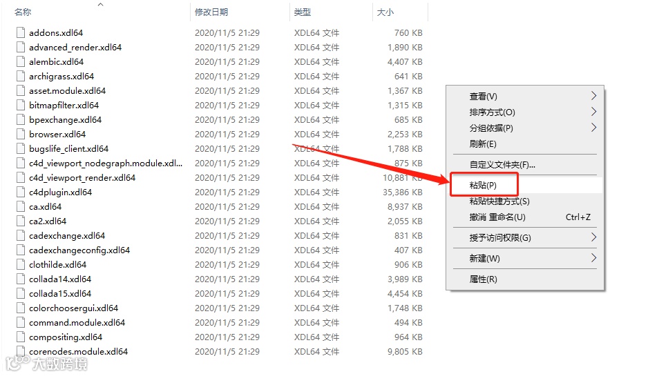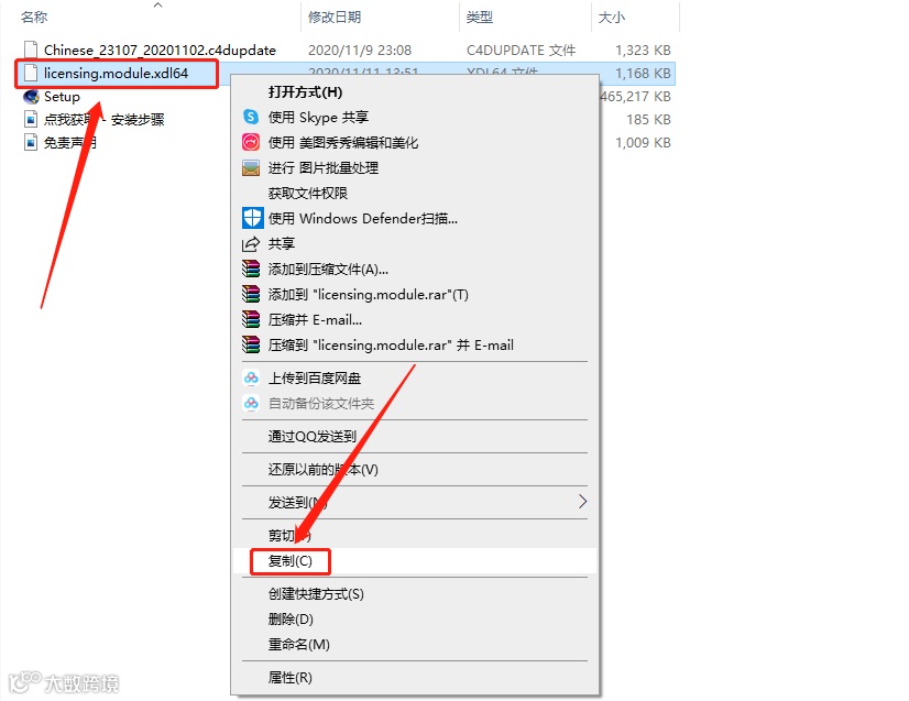 13返回到解压的【Cinema 4D R23】文件夹中,鼠标右击【licensing.module.xdl64】文件选择【复制】。