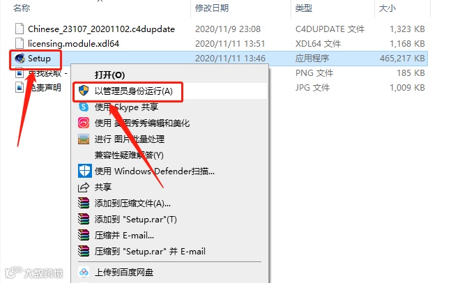 4.鼠标右击【Setup】程序,选择【以管理员身份运行】。